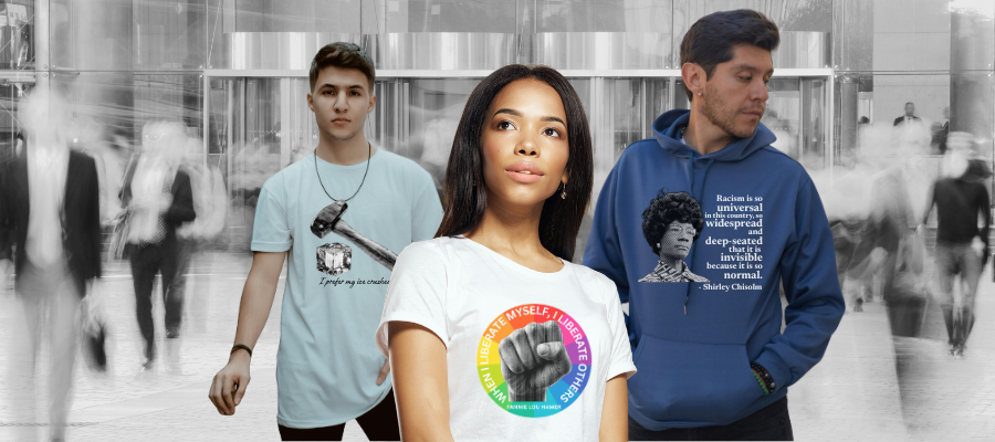 Speak your mind without saying a word with our collection of designs that fight the good fight.